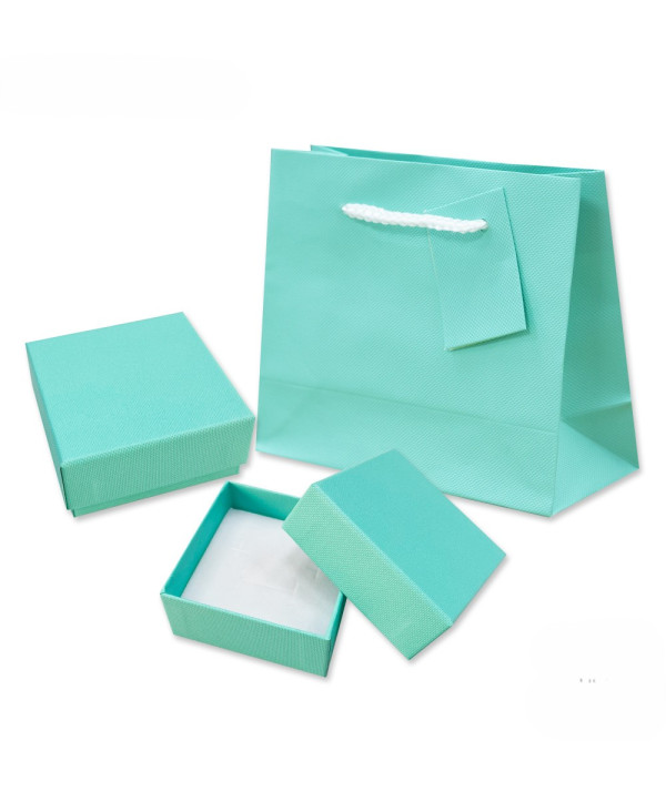 Astuccio In Cartoncino Serie Riccione 75x75x35mm per orecchini e pendenti + Shopper Turchese