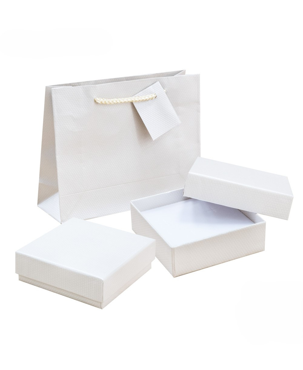 Astuccio In Cartoncino Linea RIMINI 90x90x30mm per orecchini e pendenti + Shopper Beige