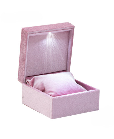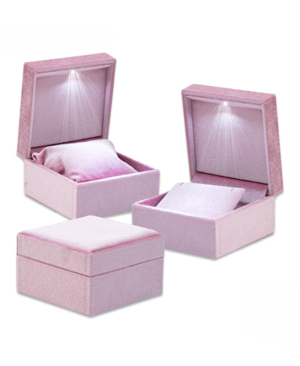 Astuccio Per Gioielli Con Luce Led Serie PISTOIA 100x100x65mm Cuscino + Collana Rosa Baby