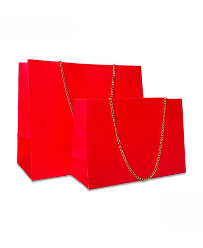 Busta Shopper Di Carta Con Catena Serie GINEVRA 22x15x8cm Rosso + Rosè